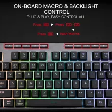 This keyboard combines fast responsiveness with premium features often reserved for high-end gear. The true RGB backlighting unlocks 16.8 million color options with preset effects and customizable modes. Four onboard macro keys allow instant command execution without extra software. Dedicated media controls keep your gameplay smooth and uninterrupted, while 26 anti-ghosting keys ensure every press registers accurately—even in the most intense battles.
