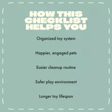 I was always struggling with managing the toys for my pets, but this guide has truly simplified things. It's so easy to create a rotation system now and I can clearly see that my pets are enjoying their playtime more. The checklist is also great for identifying any unsafe or worn-out toys which gives me peace of mind.