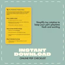 This digital checklist is ideal for pet owners who want to organize toys, minimize clutter, and ensure daily fun without constantly buying new items. If you’ve ever wondered how to rotate toys effectively or keep your pet entertained longer, this guide is for you.