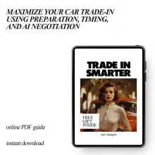 If you’ve ever wondered whether you left money on the table when trading in your car, this guide was made for you. Trade-In Smarter, Not Cheaper is a clear, modern, and practical digital guide that shows you exactly how to trade in a car for best price without stress, guesswork, or awkward dealer pressure. Instead of outdated tips, you’ll learn how dealerships really evaluate trade-ins, how small preparation steps can increase offers, and how to use AI-powered prompts to negotiate with confidence.