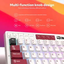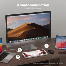 This keyboard offers everything you need for effortless multitasking. Equipped with nine functional shortcut keys, it allows quick switching between devices, smooth control of music, and instant access to different connection modes. The RGB lighting adds an immersive glow, while the built-in display shows your battery level at a glance so you always know when it’s time to recharge. With up to 240 hours of continuous use (when RGB is off), you get long-lasting reliability for gaming marathons or extended work sessions.