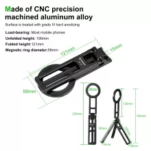 This holder features a strong magnetic grip and a foldable triangular structure that locks your phone in place. The aluminum alloy body gives it a premium feel while staying lightweight and easy to carry. When not in use, simply fold it flat and slide it into your bag or drawer.