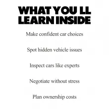 What a lifesaver! This ebook guided me through the process of buying my first used car. The checklist was super handy, and I felt confident in my purchase. 🚗💪