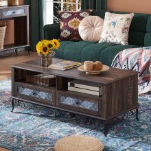 Well, let me tell ya, stumbling upon this table was like finding a hidden treasure! It's got that old-school vibe going on, a sprinkle of vintage charm that just fits right into my living room. You know when you find something and it just feels like it belongs? That's exactly how I felt with this table. But hey, don't think for a second that the appeal is all about looks. Nah mate! This bad boy comes with sliding drawers too. They're not just any ordinary though - they are super practical. I mean seriously handy! We're talking major organization game changer here. All those pesky little items lying around? Remote controls, magazines or whatever else you've got cluttering up your space - bam! Now they have their own neat little home in these drawers. And trust me when I say this: once you get used to having such organized surroundings, there's no turning back. It’s like someone waved a magic wand over your mess and made it disappear – poof! So yeah... if anyone out there is looking to jazz up their living room while keeping things tidy at the same time (and who isn’t?), then look no further than our friend here – the charmingly vintage yet oh-so-practical table. I'm telling ya folks; give this product a shot and prepare to be wowed by its blend of style and functionality. Don’t miss out on adding an amazing piece of furniture to your collection which will surely become one of your favorites in no time flat.