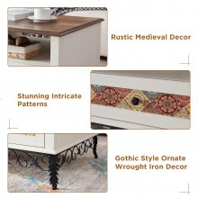 Transform your living room into a haven of rustic elegance with our 48″ Boho Coffee Table. Crafted with meticulous attention to detail, this stunning piece combines the allure of medieval design with the free-spirited essence of bohemian style. Featuring ornate detailing and gorgeous scrollwork wrought, this coffee table is more than just furniture—it’s a statement piece that adds character and warmth to any space.