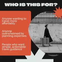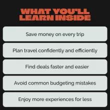 - Chapter 1: Dream Big, Spend Small — Learn how to set a realistic travel budget, break down costs, and use the best budgeting tools.