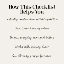 If you're someone who loves creating inviting table settings but often feels overwhelmed with color choices, this guide is your answer. It not only helps in getting suggested color palettes from AI seamlessly but also ensures they feel intentional and curated every single time.