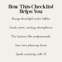 Ready to design your dream winter table? Download your Warm Winter Dining Table Checklist now and start creating cozy, inviting, and unforgettable dining spaces filled with charm and warmth. Add it to your cart today and let your winter table styling journey begin.