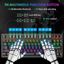 Meet the compact wired mechanical gaming keyboard built for speed, comfort, and style. Designed with 82 responsive blue switches, this mini keyboard delivers crisp, tactile feedback that elevates both gaming and everyday typing. Its vibrant rainbow LED backlighting adds flair and helps you stay focused in low-light environments. With a wired USB connection, you get stable, lag-free performance whenever the action heats up.