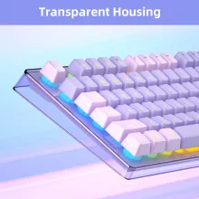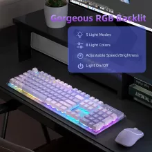 If you love a clean and modern aesthetic, this set delivers. The keyboard features a transparent base that creates a brilliant lighting effect across the entire surface. With 5 lighting modes, 7 solid colors, a rainbow option, adjustable brightness, and customizable speeds, you can match your mood or environment effortlessly. Shine-through keys keep everything easy to see in low-light rooms, while the mouse includes an elegant RGB light strip for the perfect finishing touch.