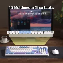 Crafted for long hours of use, the ergonomic key layout and comfortable finger movement make typing smooth and effortless. Foldable rear brackets let you choose the height that feels best, keeping your hands relaxed during long gaming or work sessions. Quick multimedia shortcuts allow you to control volume, music, and more with simple key combinations.