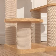 Every aspect of this cat tree has been crafted keeping in mind the playful nature and safety of your cat. The robust wooden construction ensures stability, while the natural materials provide an eco-friendly touch to your home decor.