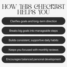 This checklist is ideal for students, professionals, entrepreneurs, creatives, self-improvement enthusiasts, and anyone who wants a clear yearly personal growth roadmap without complicated planning systems. Whether you’re starting your growth journey or refining an existing one, this tool meets you where you are.