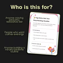 The digital download was quick and easy, the checklist is straightforward, but most importantly - it works! I'm sleeping better than ever thanks to these pre-bedtime yoga exercises.