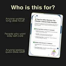 - Designed for Real People: Created specifically for yoga for office workers, with stretches you can do at your desk.