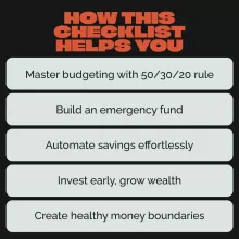 - Practical, Actionable Advice: This checklist offers simple, easy-to-understand steps that you can start applying right away to make good money decisions while young.