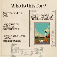 Unlike other generic resources, this AI-powered checklist is tailored specifically for dog owners. It helps you find the best dog-friendly beaches and parks based on your dog’s unique adventure style, while also considering important factors like leash rules, seasonal access, and even crowd levels. With all the information you need at your fingertips, you’ll be able to plan each outing with confidence and ease.