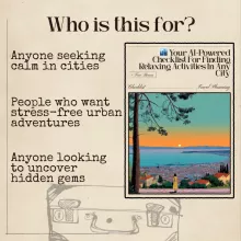 If you’ve ever found yourself wandering through a busy city, yearning for a peaceful escape, this digital guide is an absolute game-changer. More than just a traditional itinerary planner, it’s like having a personal assistant to help you curate the perfect day of relaxation and exploration. What makes this guide so unique is its ability to not only find hidden gems like quiet cafes or scenic parks but also to lead you toward mindful experiences. Whether it’s a yoga studio tucked away in a quiet corner of the city, a serene meditation center, or even a creative art workshop, it tailors your experience to fit your mood and needs. You can even add sensory experiences like sound baths or aromatic tea ceremonies to your day, making it feel like a mini-retreat right in the heart of urban life. As someone who loves exploring nature, I was thrilled to discover how easily this tool helps you uncover walking trails, botanical gardens, and other nature-focused activities, even in the most densely populated cities. It’s perfect for those of us who enjoy nature but prefer not to leave the city’s edge. The guide maps out these green spaces for you, transforming your urban adventures into calming, nature-filled escapes. What’s even better is how it balances active and restful activities, ensuring you don’t overload your day with too much hustle and bustle. Whether it’s a gentle stroll through a local park or a calming yoga session in the middle of the day, this tool helps you strike the perfect balance between movement and relaxation. Another standout feature is how incredibly user-friendly it is. Planning a day of stress-free enjoyment has never been easier. You can create your own personalized itinerary with just a few clicks, ensuring that your day flows smoothly from one experience to the next. For those who are locals, this guide will open your eyes to new ways to unwind and recharge, even in familiar surroundings. If you're traveling, it offers a refreshing way to experience a city beyond its tourist attractions, making every visit feel like a much-needed escape. No matter where you are, it turns every day into a chance to slow down and savor the small, beautiful moments that are often missed in the rush of everyday life
