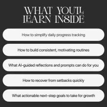 • Chapter 3 — Staying Consistent: Discover the psychology of micro-wins, AI-generated reflection questions, common mistakes to avoid, and a realistic 5-minute daily routine that keeps motivation alive.