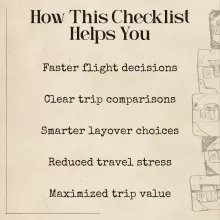 The best part about this checklist? It focuses specifically on layover vs direct flights—an aspect often overlooked but crucial in making smart travel decisions. Highly recommended for anyone wanting to plan smarter trips.