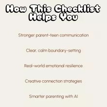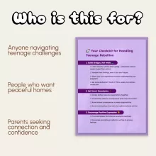 Unlike generic parenting guides, this checklist focuses on actionable steps that bring calm and clarity to real-life family situations. Each section is crafted to help you shift from reacting to responding—building stronger relationships instead of power struggles. Whether your teen is testing limits or shutting down emotionally, this guide helps you apply proven strategies that restore respect and communication.